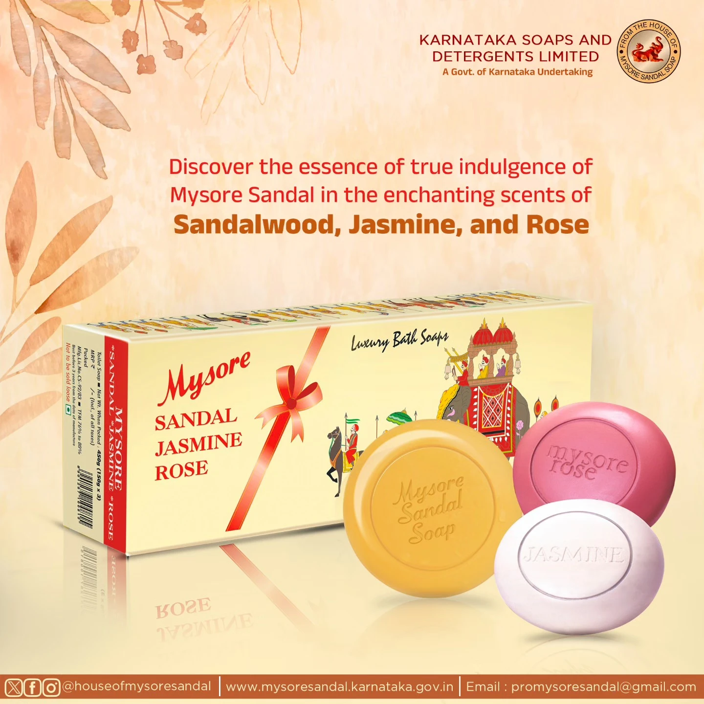 Bring home the pure essence of nature with Mysore Sandal Jasmine Rose Soap, 450g Pack of 2 (450×2).